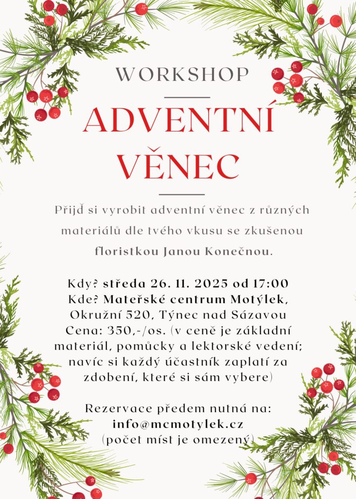 PostHeaderIcon Zveme vás na krásnou předvánoční akci – vytvoříme si adventní věnce pod dohledem floristky Jany Konečné. Místa je nutné si předem rezervovat.