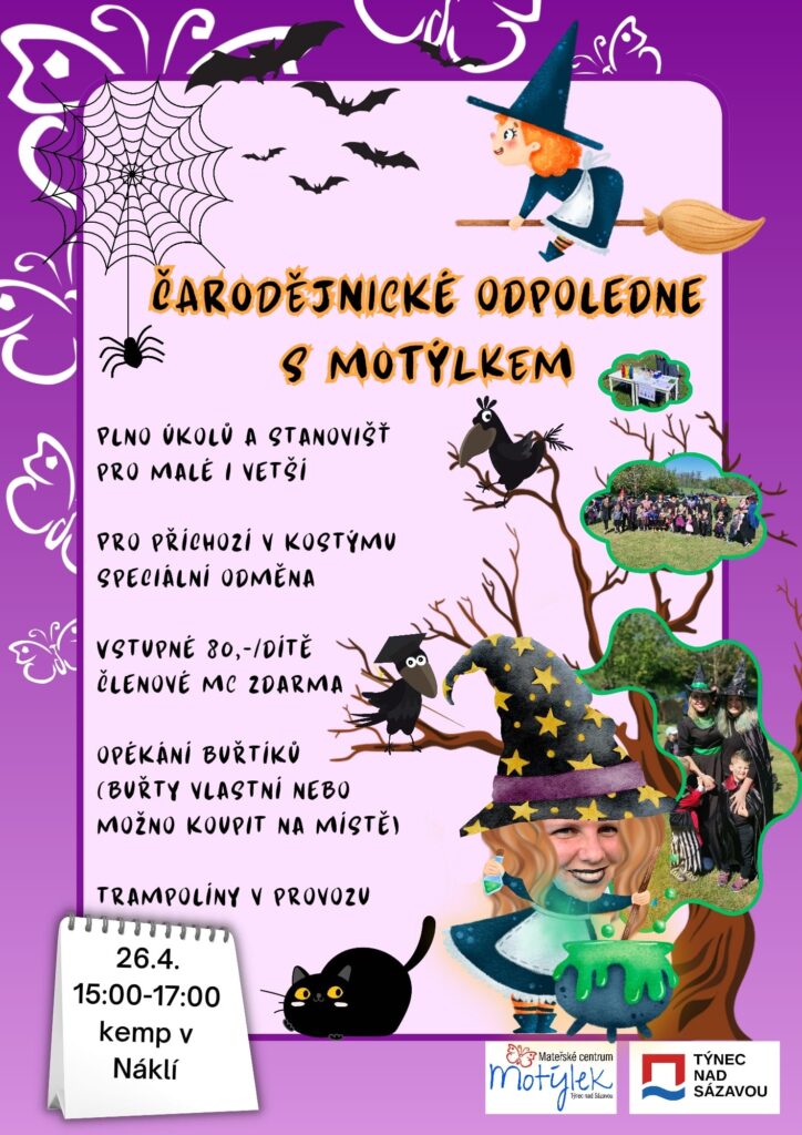 Již brzy se těšíme na náš tradiční čarodějnický rej pro menší i větší děti. Na každého dětského účastníka čeká v cíli odměna. Kromě plnění úkolů se spoustou čarodějnic bude možnost opéct si špekáčky (můžete si donést vlastní, případně budou k zakoupení na místě) nebo zaskákat na trampoškách. Vstupné je 80,-/dítě, členové MC Motýlek zdarma. Těšíme se, 3-2-1 start!