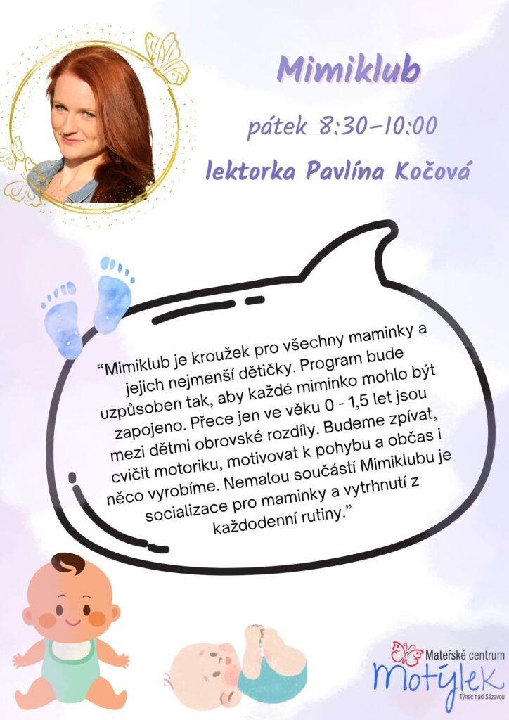 Ideální prostor pro maminky s nejmenšími dětmi, které si chtějí užít čas se svým miminkem v přítomnosti ostatních maminek s podobně starými dětmi. Kroužek pro nejmenší motýlky je určen dětem od narození do cca 1,5 roku.