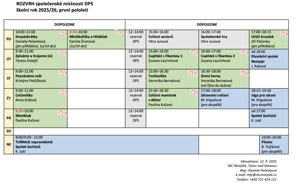 PostHeaderIcon Rozvrh společenské místnosti DPS